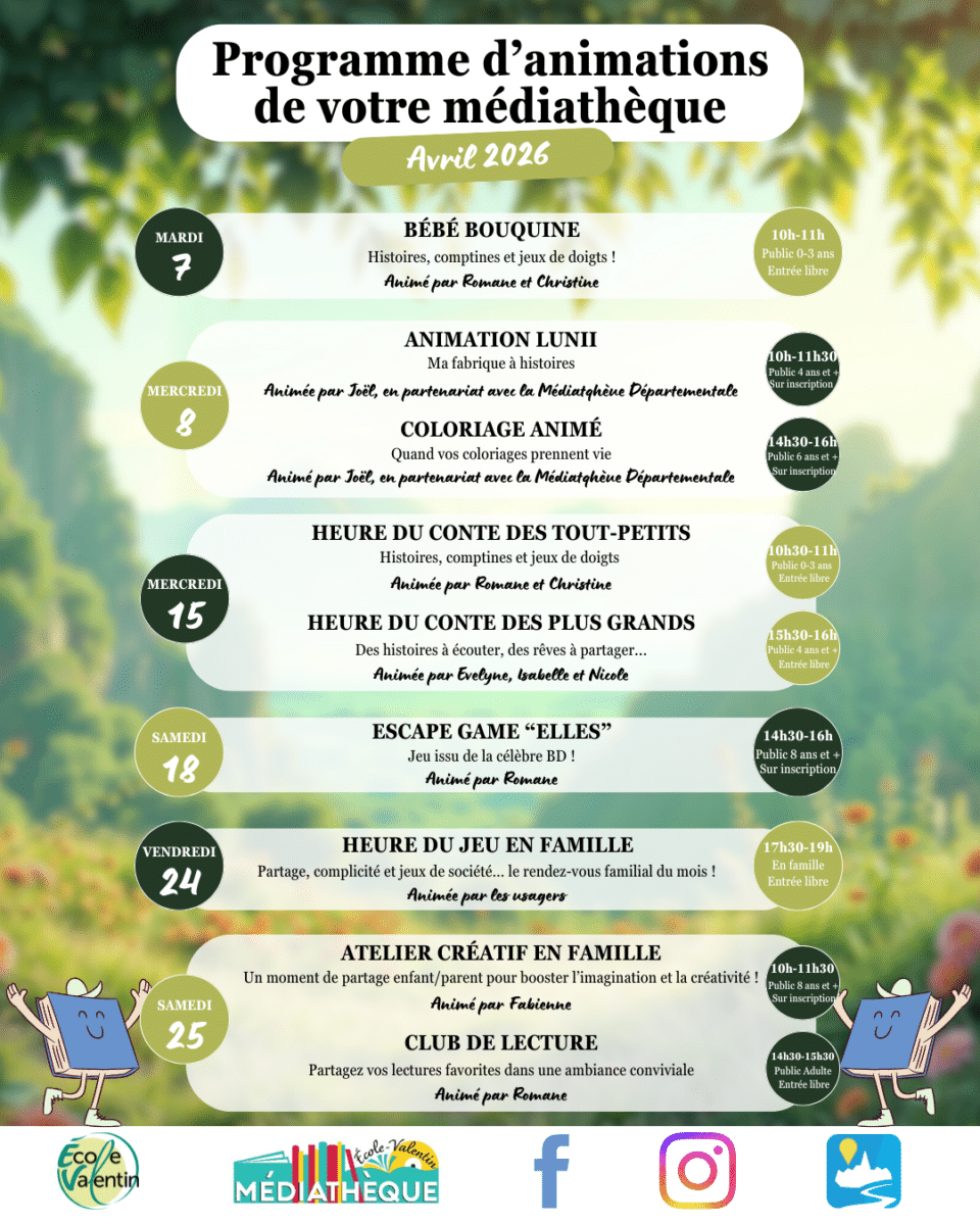 🌸Programme d’avril à la médiathèque 🌸