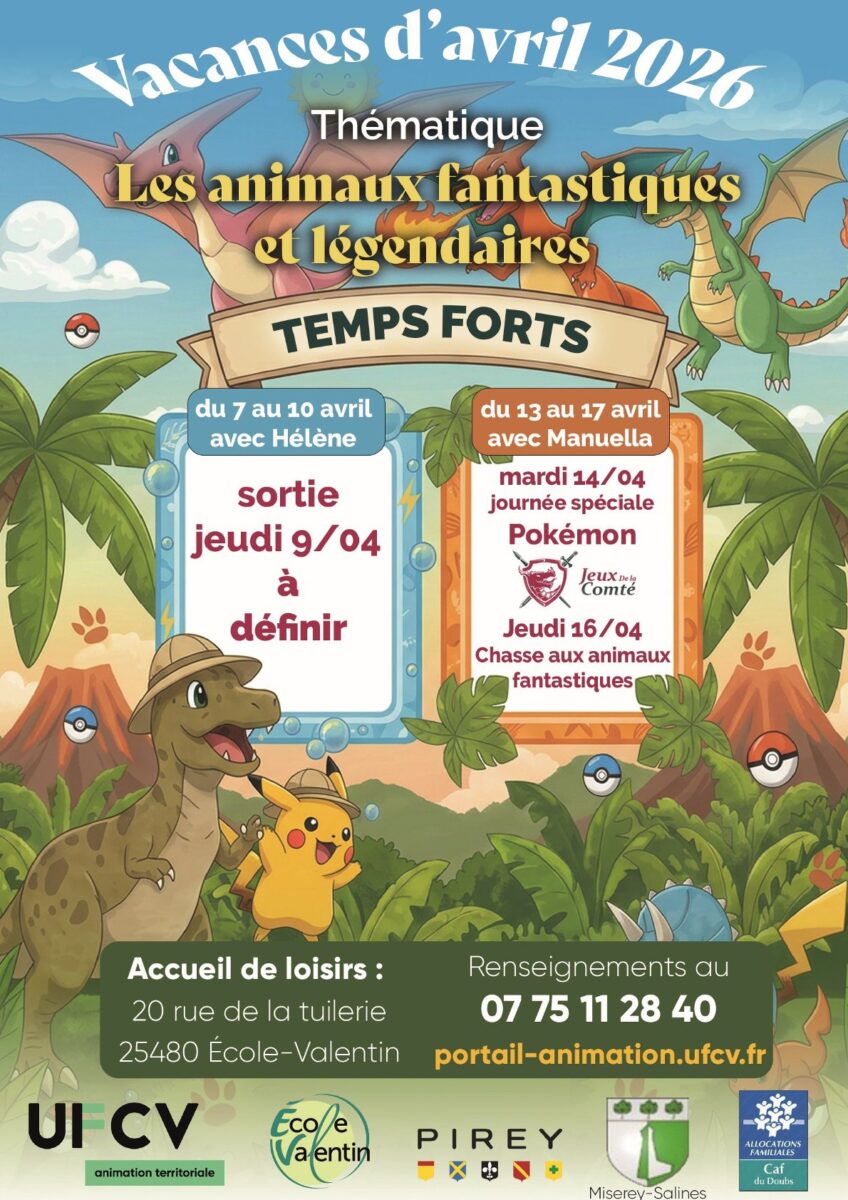 La thématique de ces vacances sera « Animaux fantastiques et légendaires », et nous passerons des dinosaures aux pokémon pour accompagner nos journées !