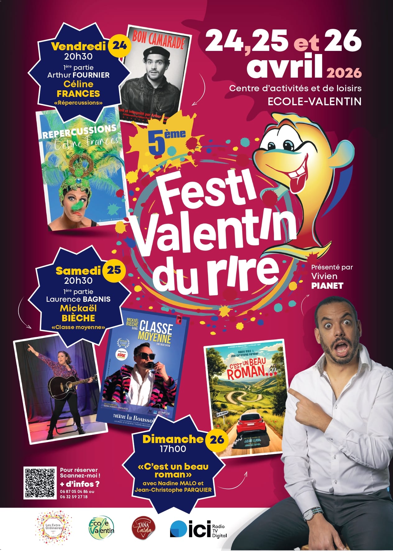 La commune et Les Extra Ordinaires Cie sont heureux de vous inviter à leur 5ème Festi’Valentin du rire, un rendez-vous festif à partager en famille ou entre amis, avec trois soirées de spectacles et d’artistes talentueux.