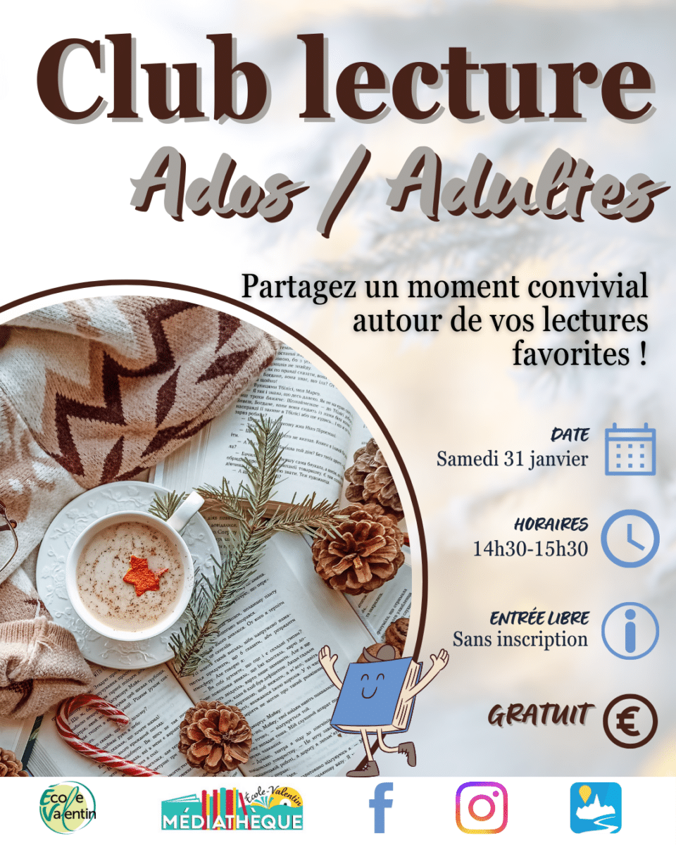 La médiathèque vous invite à son club de lecture animé par Romane, un moment régulier pour partager vos coups de cœur et vos découvertes du moment autour d’un café ou d’un thé.