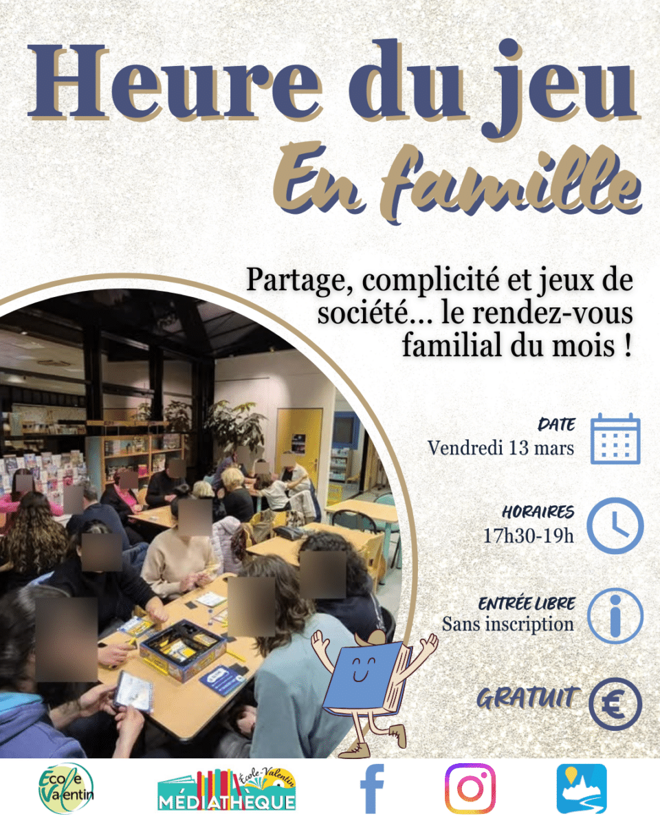 Rendez-vous pour notre heure du jeu, un temps ludique mensuel animé par les usagers de la médiathèque. Venez découvrir et partager des jeux de société dans une ambiance conviviale et détendue !