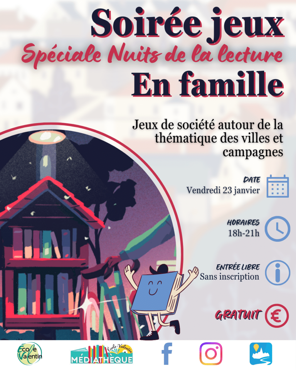 À l’occasion des Nuits de la lecture, la médiathèque vous invite à une soirée jeux exceptionnelle autour du thème villes & campagnes 🏙️🌾